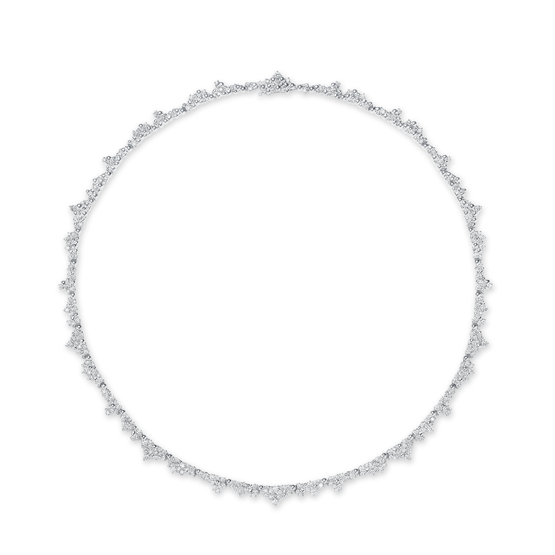 18k white gold with brilliant cut white diamonds (4.20 carats). 16″ long; secured with a spring clasp.