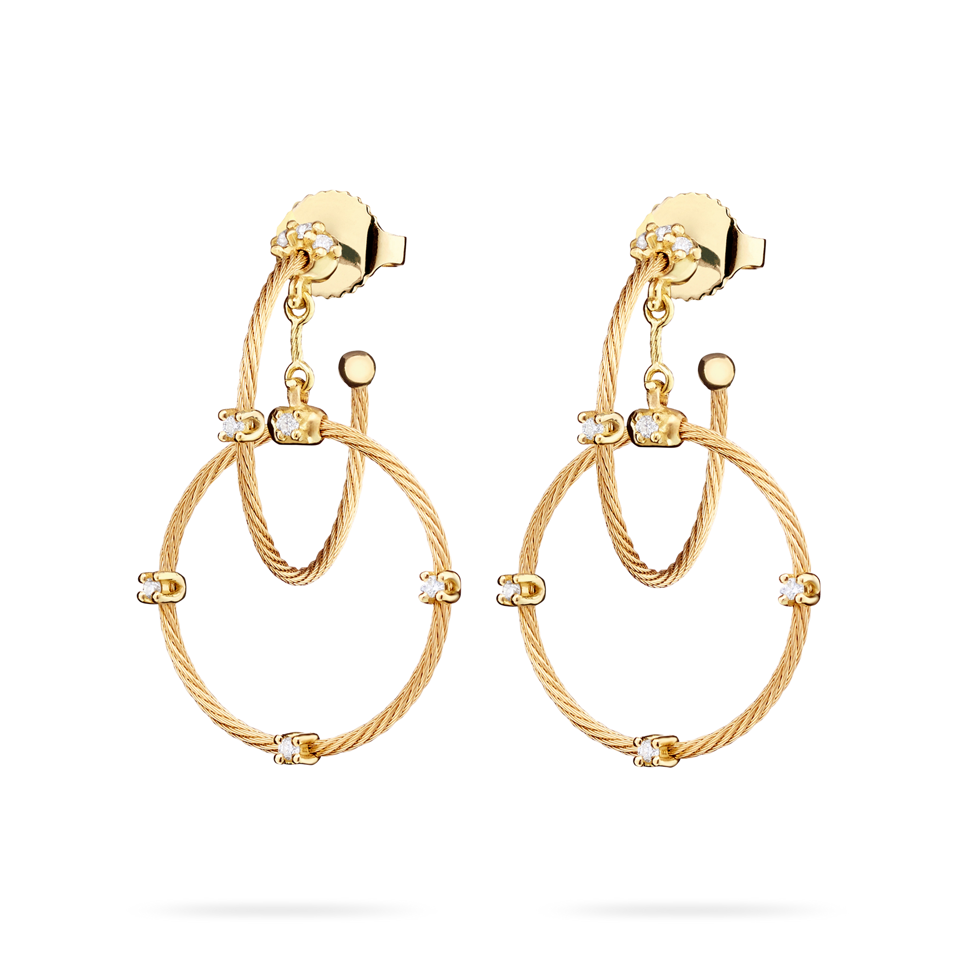 Simple and understated, interlocking hoops of flexible gold wire and diamonds signify two lives entwined.