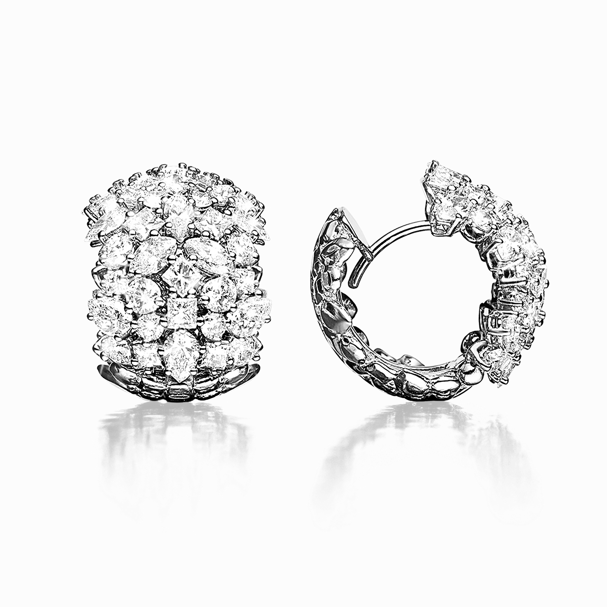 A flurry of round, square, marquis and pear-cut diamonds converge into sparkling Earring which enfolds the earlobe.