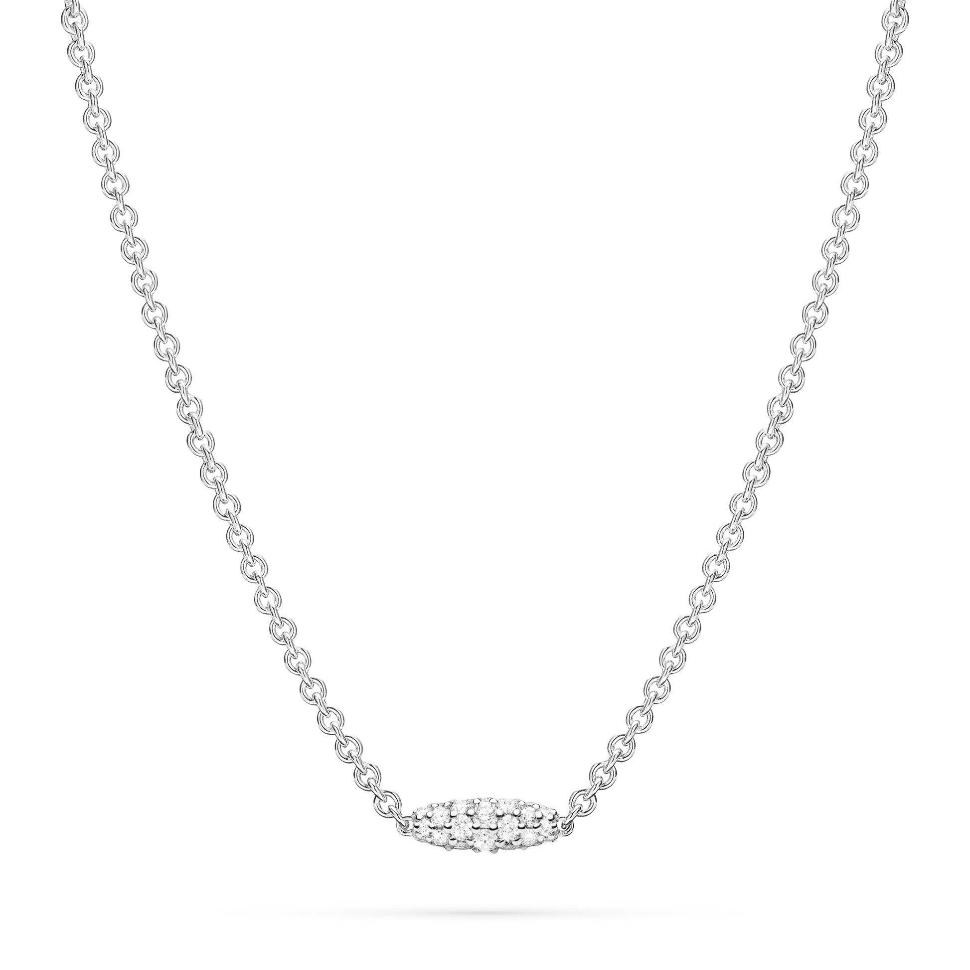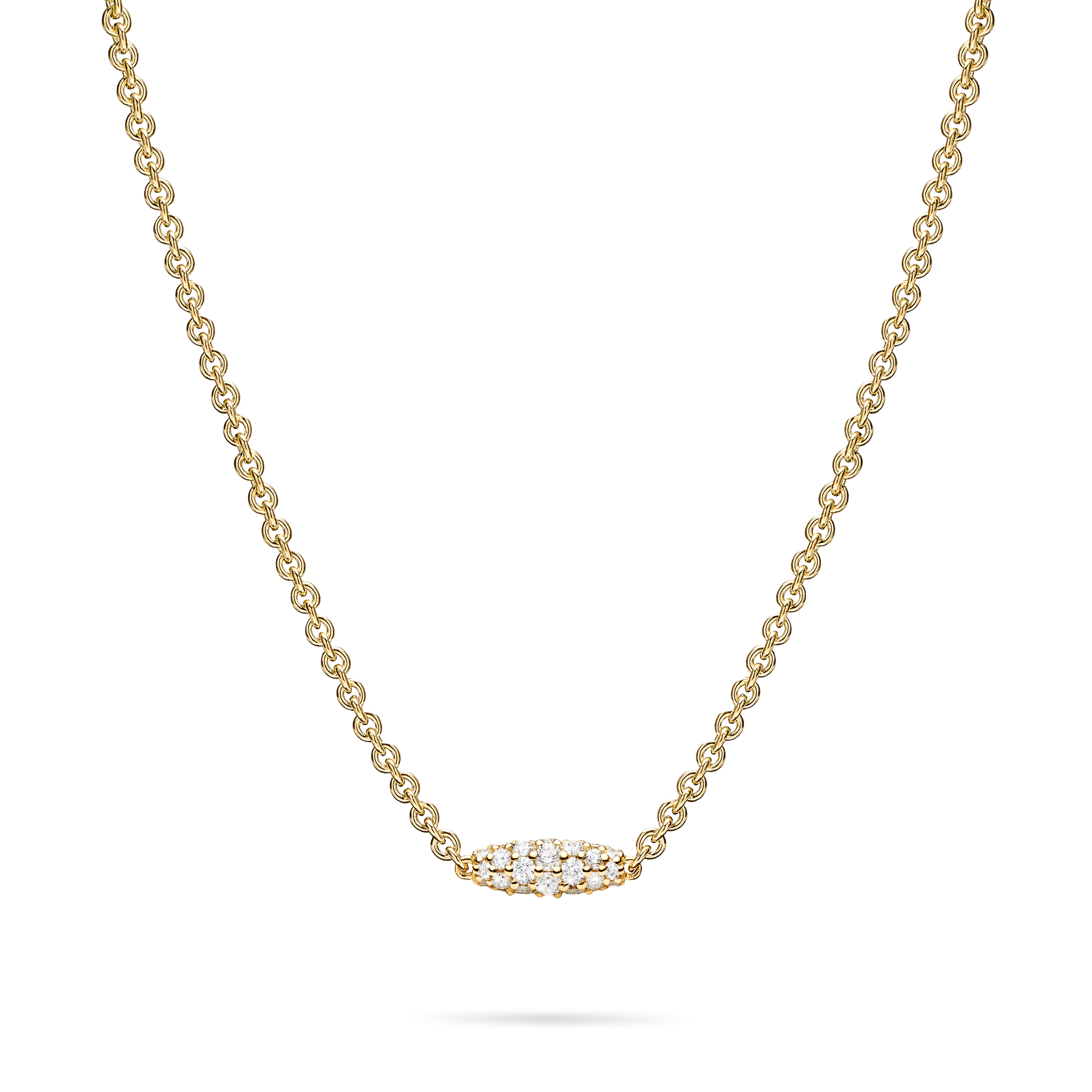 A delicate gold chain is adorned with a single pave diamond element for a simple, understated effect.