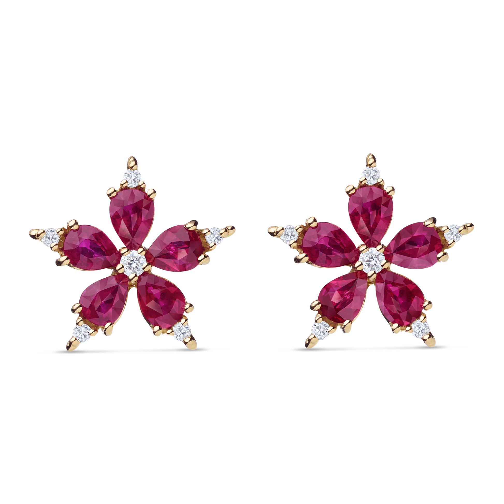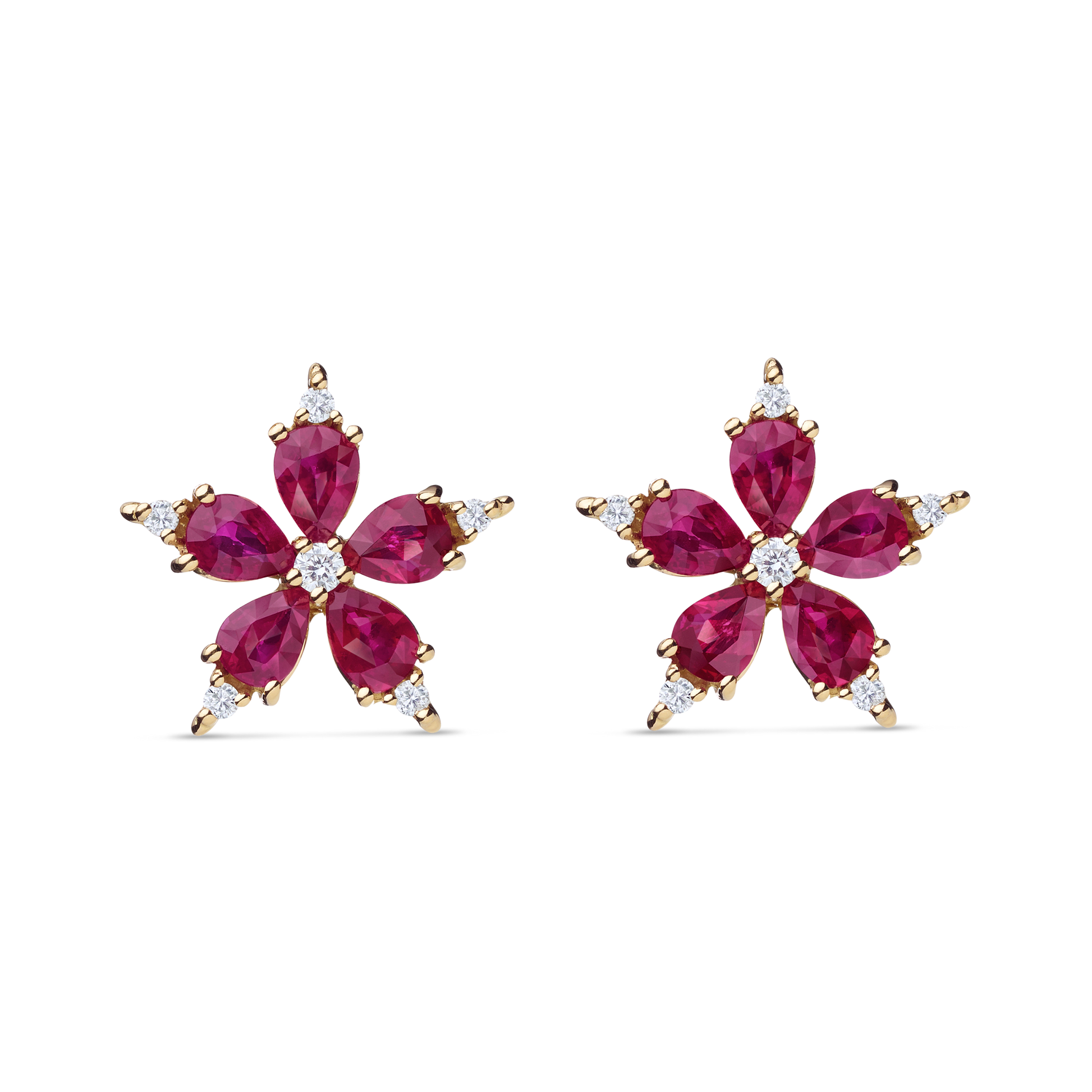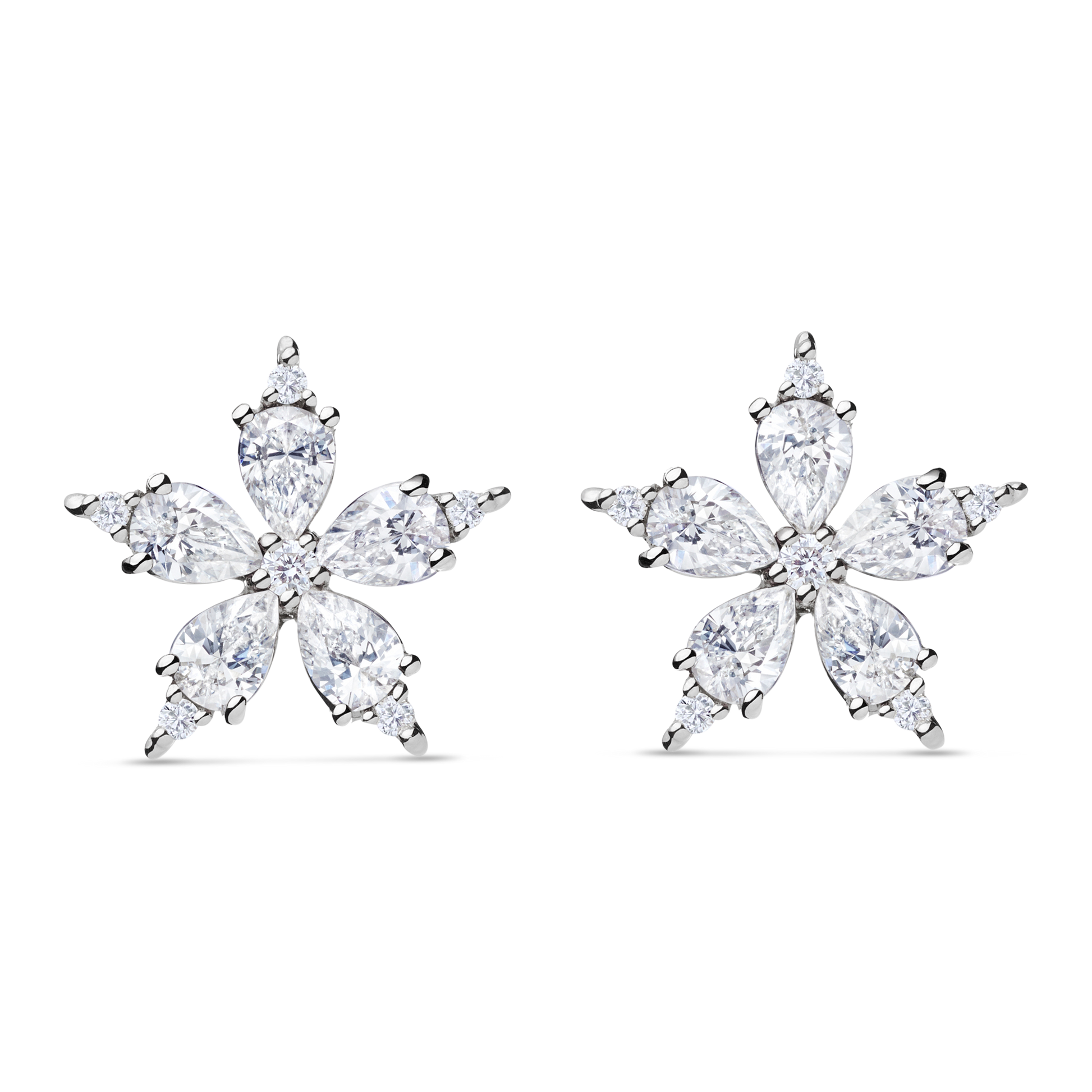 A celestial collection spotlighting a constellation of round diamonds and pear-shaped precious gemstones that align in a star-studded motif.