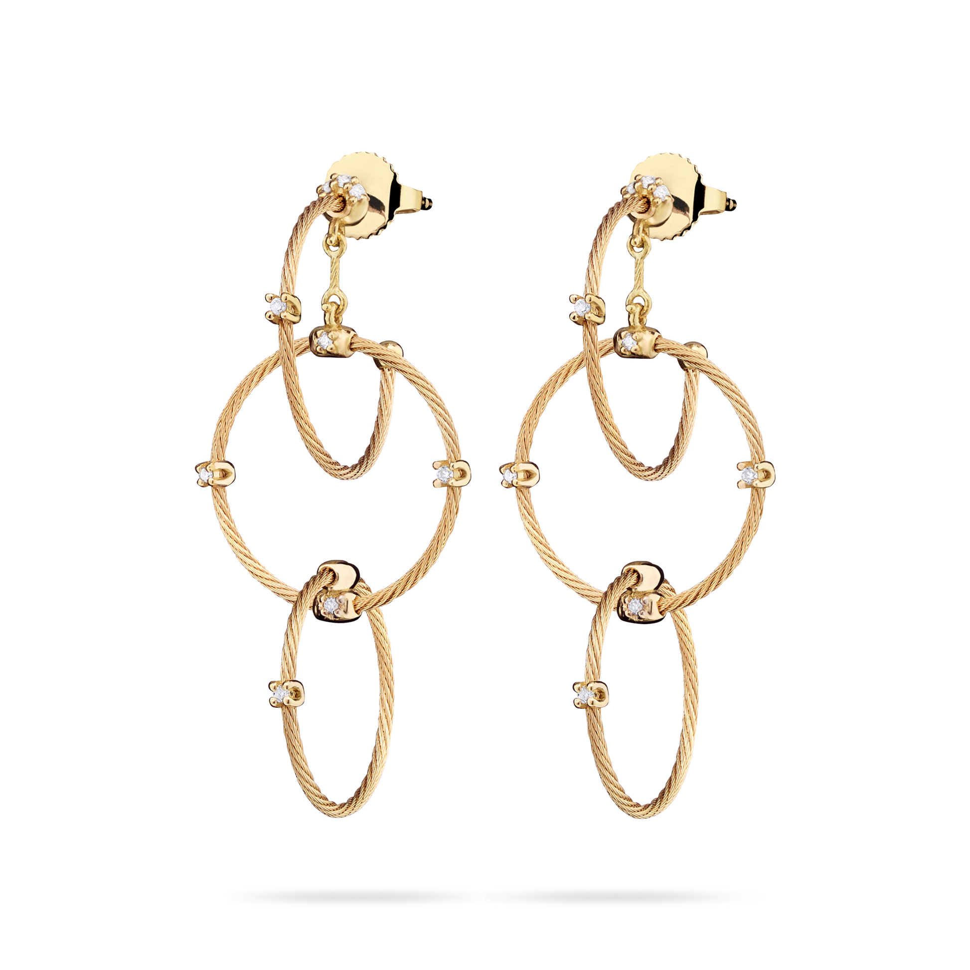 Simple and understated, interlocking hoops of flexible gold wire and diamonds signify two lives entwined.