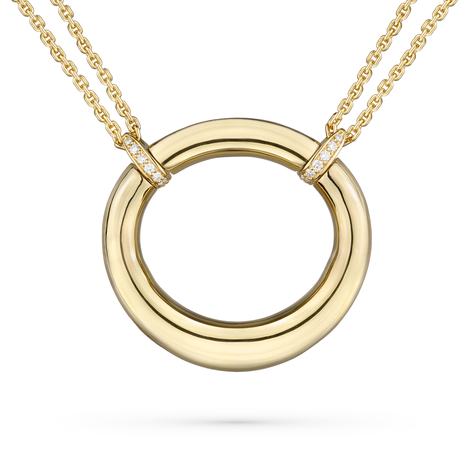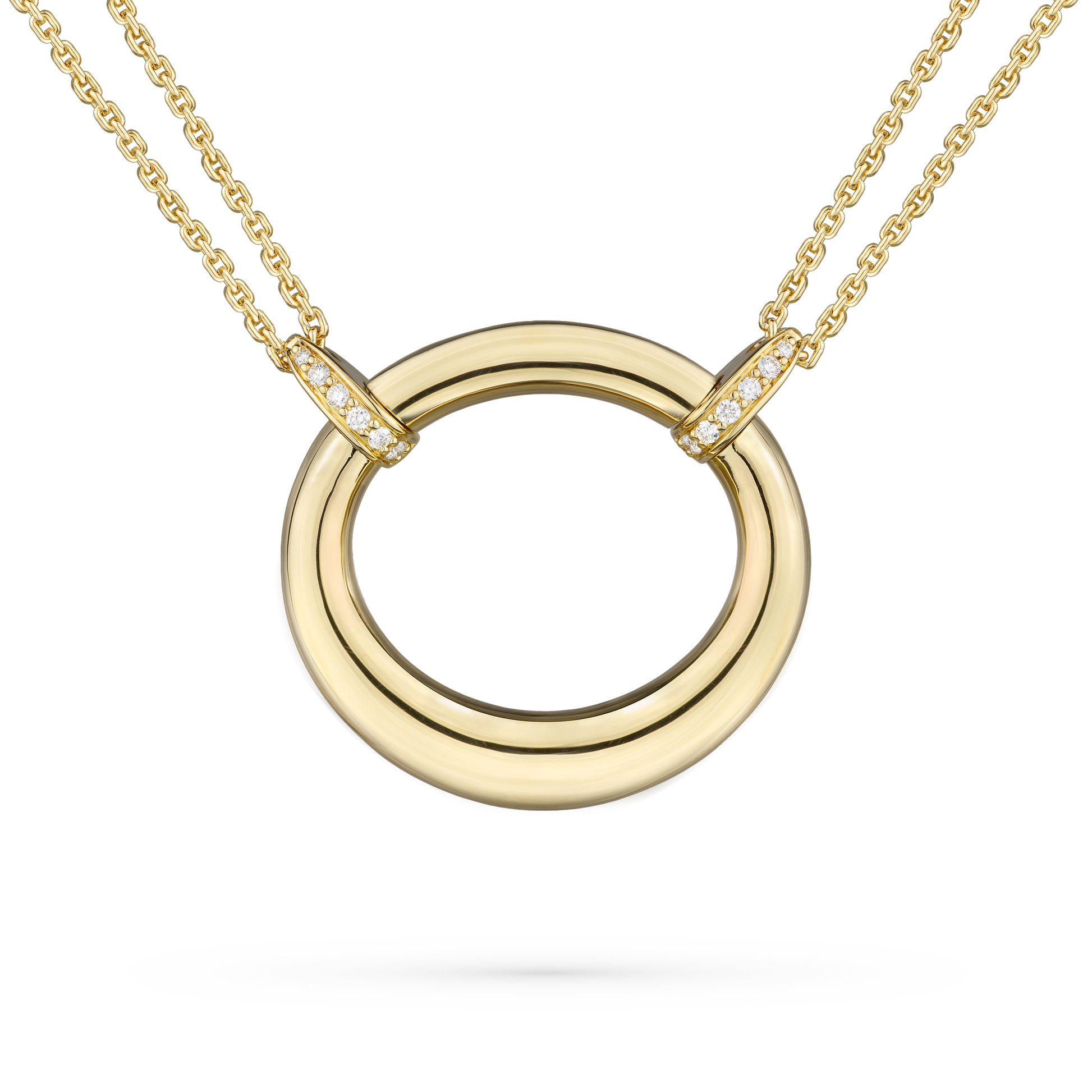 18k yellow gold with round brilliant white diamonds (.06 carats), 16" long; with a lobster clasp