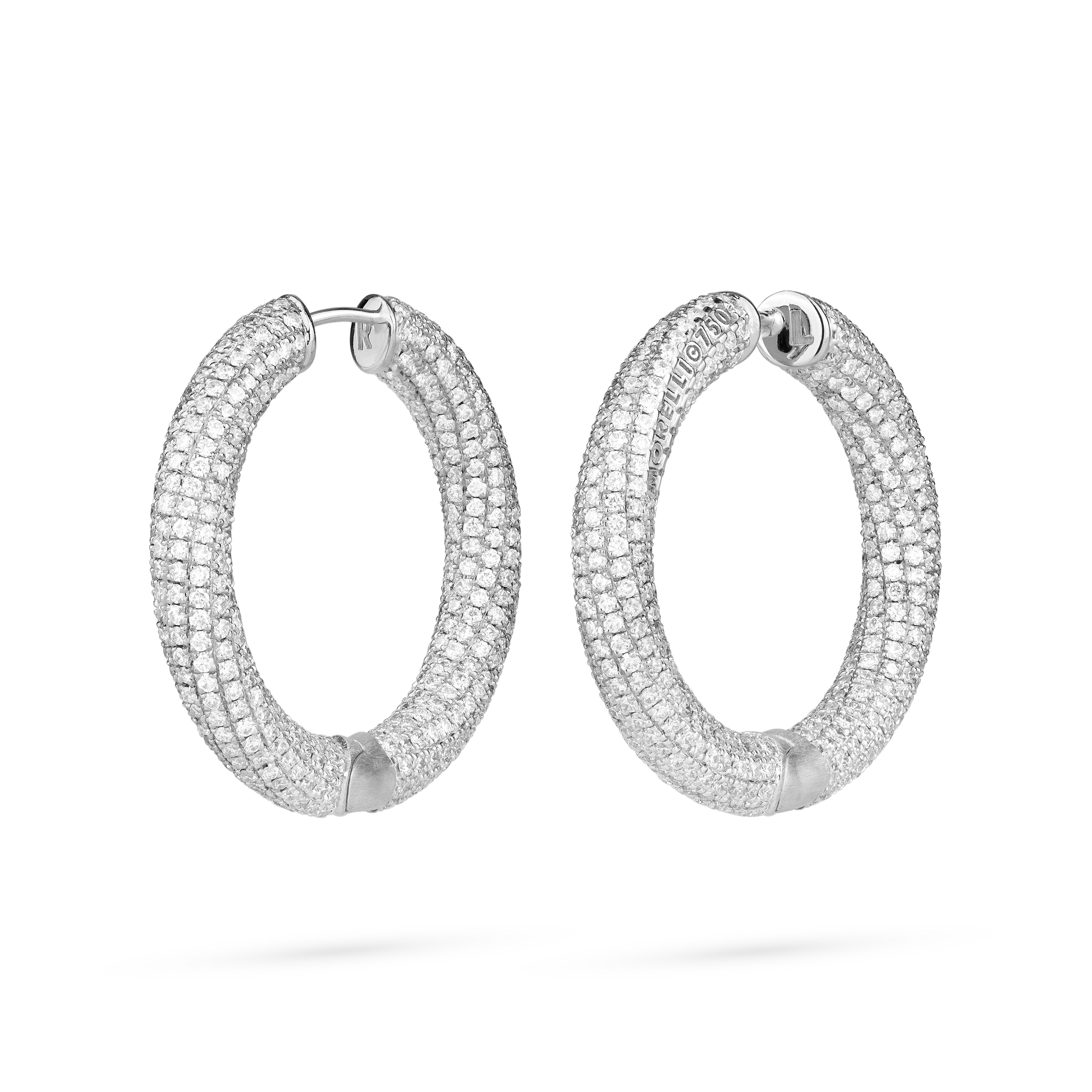 30mm hinged hoops with post in 18k yellow gold with brilliant cut white diamonds (7.00 carats).